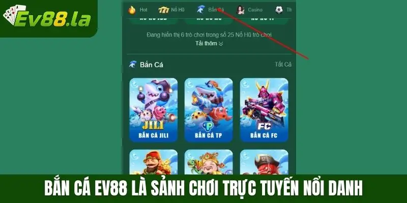 Bắn cá Ev88 là sảnh chơi nổi danh giới gambling