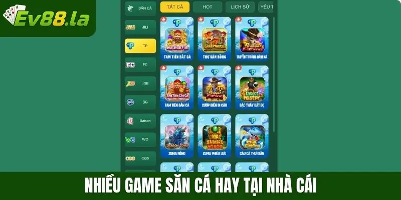 Kho game bắn cá Ev88 rất đa dạng với nhiều tựa game sở hữu phong cách và cơ chế chơi riêng biệt. Mỗi game đều mang đến bối cảnh độc đáo, tạo nên hành trình săn thưởng thú vị cho người chơi. Dưới đây là các lựa chọn nổi bật: